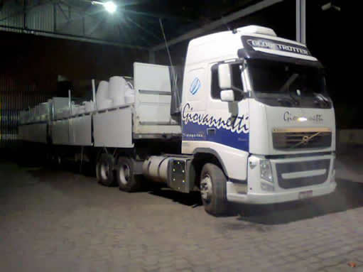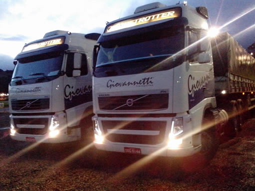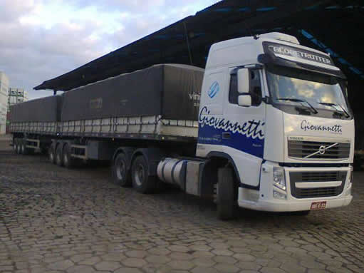 A Giovannetti Transportes Ltda atua em todo território nacional com caminhões TRUCADOS COM 4° EIXO CAPACIDADE 320 SACAS OU 19 TON, CARRETAS GRANELEIRA TRUCADA CAPACIDADE 520 SACAS OU 32 TN, CARRETAS MODELO BICAÇAMBA 36 TN PARA TRANSPORTE DE CAFÉ A GRANEL, CALCÁRIO,GESSO E CARGAS EM GERAL E RODOCAÇAMBAS E GRANELEIROS DE 9 EIXOS PARA ATÉ 50 TN.